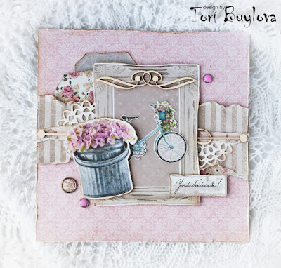 Для создания открытки, использовала бумагу из коллекции "Свадебная" и коллекцию "Шебби Базовая "