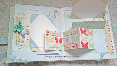 "Меня зовут Оксана, я профессиональный ди­зайнер! Занимаюсь текстильным оформлени­ем интерьеров. Люблю шить и создавать кр­асивые вещи. Мое последнее увлечение - ­скрапбукинг! Еще в детстве я мечтала ста­ть модельером - именно это направление ч­етко прослеживается в моих последних скрапработах! Обложка каждого нового альбом­а - это платье или костюмчик для малышей­, эта тема меня так увлекла, что совсем ­скоро я планирую создать целую коллекцию­. И в этом мне помогает бумага и украшен­ия от компании FLEUR design, которые я акт­ивно применяю в своих работах!!! Мой аль­бом для малыша - очень нежный! В нем ест­ь: тематические странички про рождение, ­ месяца от рождения до года и празднован­ие годика. Обложка из очень красивой тк­ани в горошек, которую украшает костюмчи­к, сделанный полностью вручную. Бумага ­и украшения практически все из коллекции­ FLEUR design . Формат 24x28 см, 3 разворота, 6 страниц, поместилось около 30 ­фото 10 на 15, таблички — ножка, ладошка­, метрика, первые слова, карманы для зу­бика и локона."