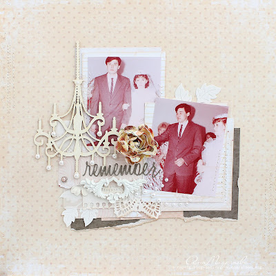 Для создания странички использовала листы В саду, Невеста, Комната невесты и Карточки коллекции "Наша свадьба", а также чипборд, брадсы и полужемчужины FLEUR design.