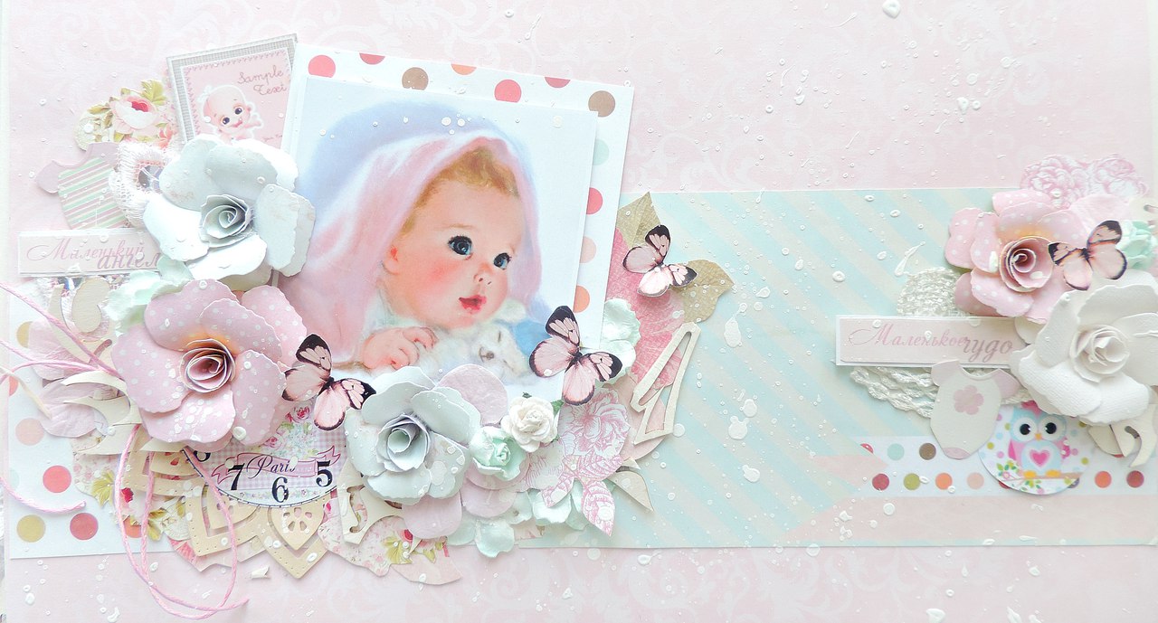 Привет всем Творческим! По нашему скетчу у меня получилась вот такая страничка с милой крошкой, которая несомненно вызывает умиление и улыбку). Детки такие детки).