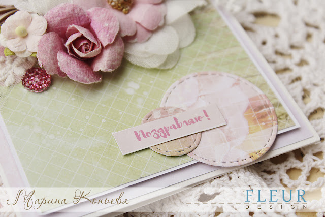 По нашему универсальному скетчу я сделала нежную открыточку с шейкером. Обожаю сочетание нежного розового и зеленого оттенка в открытках. Смотрится очень гармонично и по-весеннему. В создании моей открыточки мне помогла коллекция Мой сад от FLEUR design.