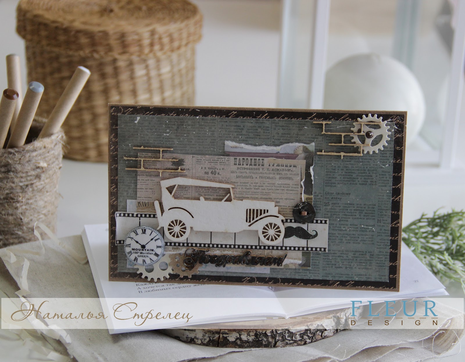 А сотворила с помощью нашего скетча, мужскую ретро-открытку.