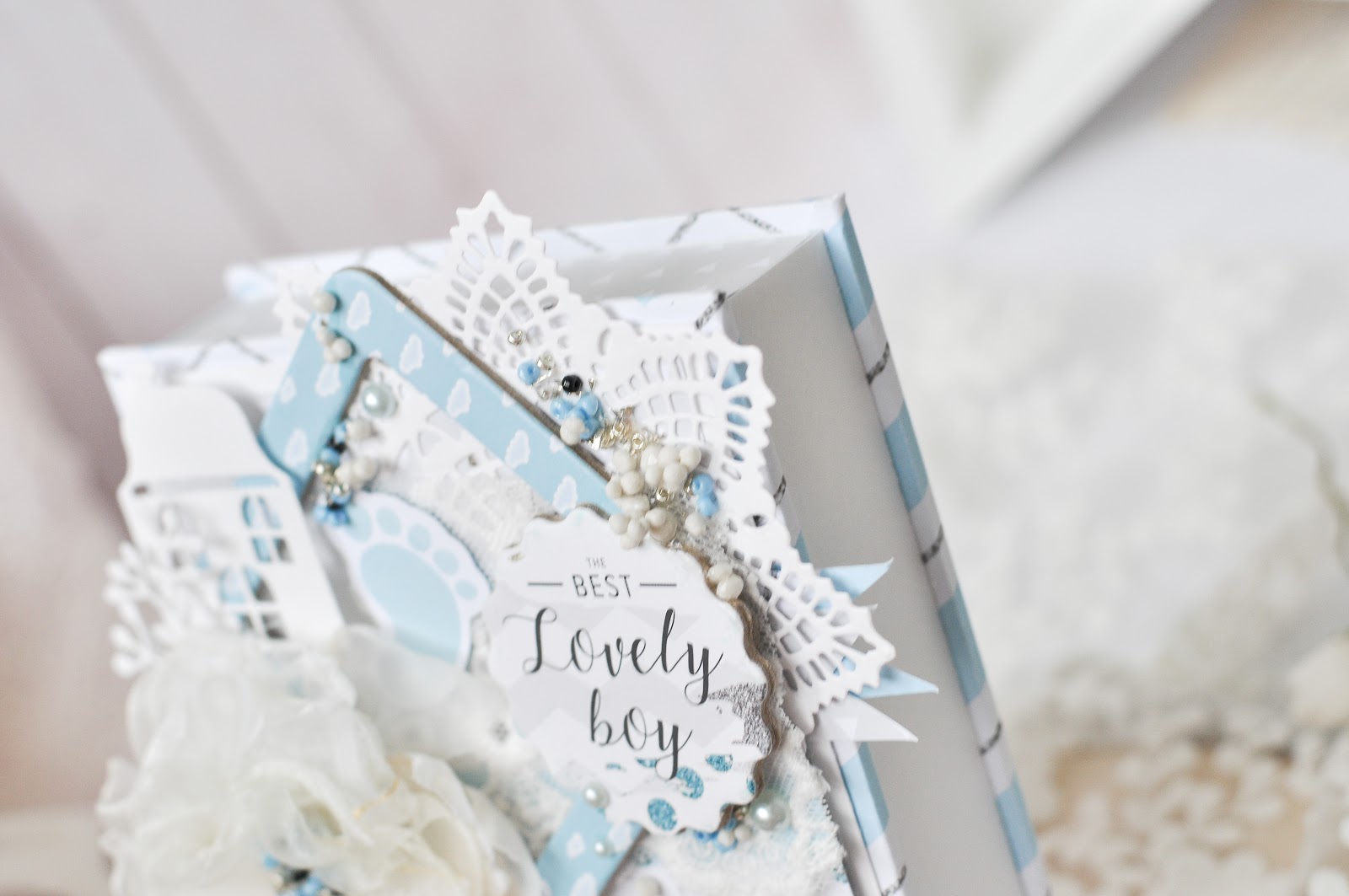 Сначала я хотела использовать только листы из коллекции Моя леди , но потом в качестве фона выбрала серый лист с треугольниками из коллекции Мой джентельмен, а украшения добавляла уже из коллекции для девочки.