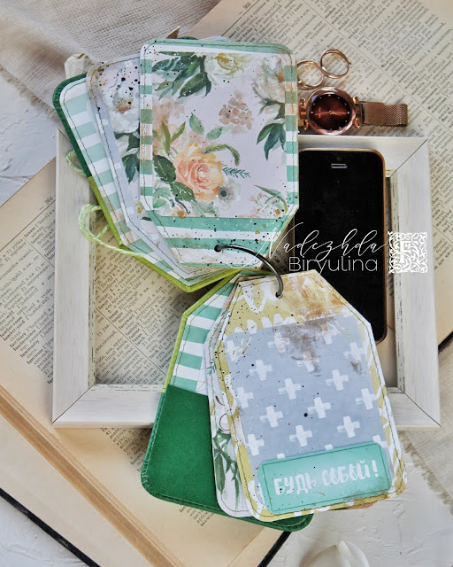 Так же прекрасно по цветовой гамме подошли сюда рамка на обложке папки и декоративный чипборд от любимого Fleur design.